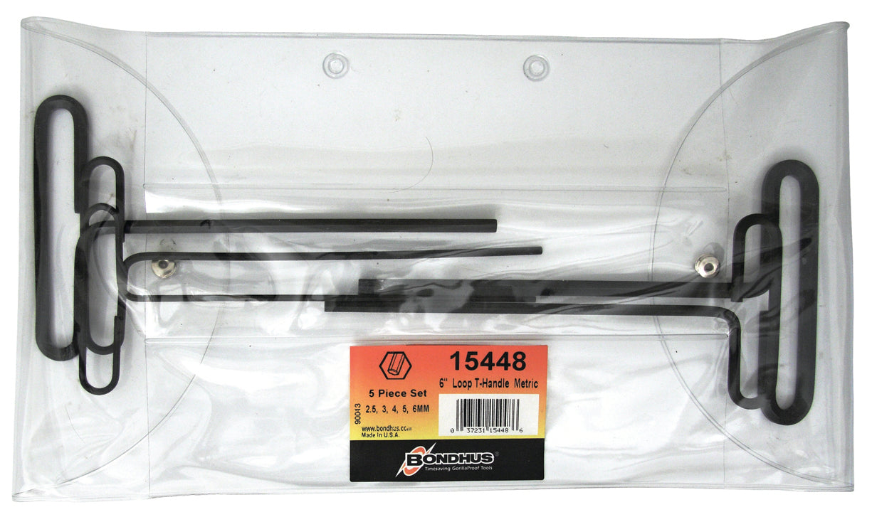 BONDHUS LTX50P-6 T-Handle Loop 6" Hex Key Driver 5pcs Metric Set 2.5mm-6mm 15448 - Hex Tip Loop T-Handle Set of 5 pcs w/ProGuard™ Finish. 6" Length. Set Includes: 2.5mm, 3mm, 4mm, 5mm & 6mm