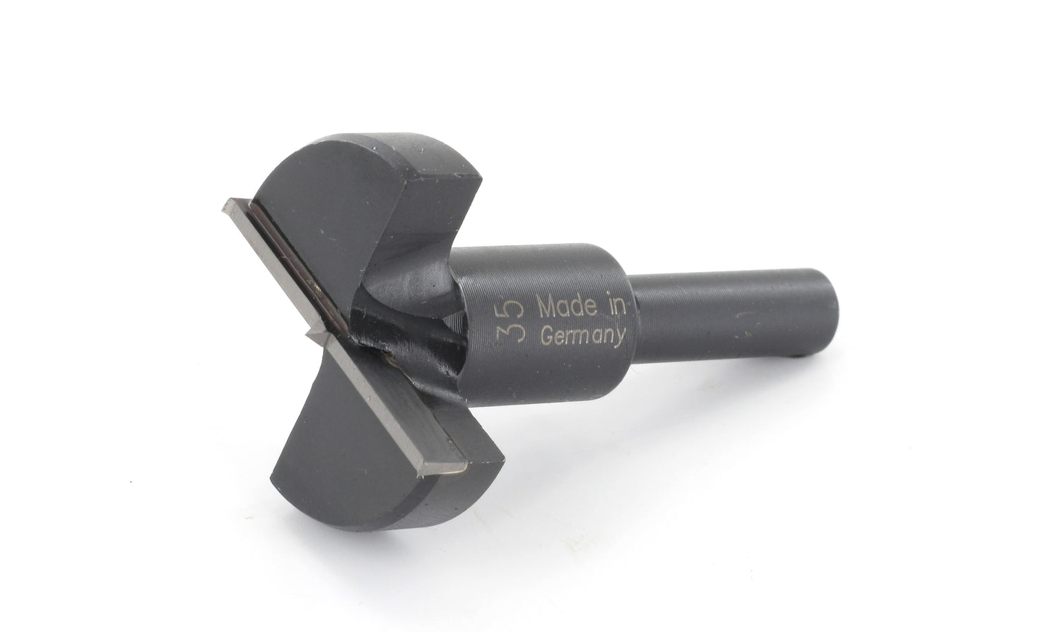FAMAG Hinge boring Bit TCT version(carbide tipped), OØ20mm, 3516020 - Small centre point, taper tap and two main cutting edges. The Zenterfix is equipped with a guide bush incl. spring and a core drill HSS with roof tip. Tear free accurate hinge drillings. The tool steel version for uncoated soft wood. The Bormax® - geometry for coated boards and limited for plastic laminated chipboards or MDF. Carbide tipped version can be used without problems for plastic coated materials. The Zenterfix will centre itself in a screw hole of a fitting or a hinge. Only the BORMAX - geometry tools are suitable for freehand drilling. When using Bormax® on coated boards, let the power drill run very slowly so that the teeth can tear the coating open and the drill won't be damaged by too much heat. Alloyed tool steel or TCT (main cutting edge and taper tap). RPM-1000 rpm for Tool steel-types. 2500 rpm for TCT-types.